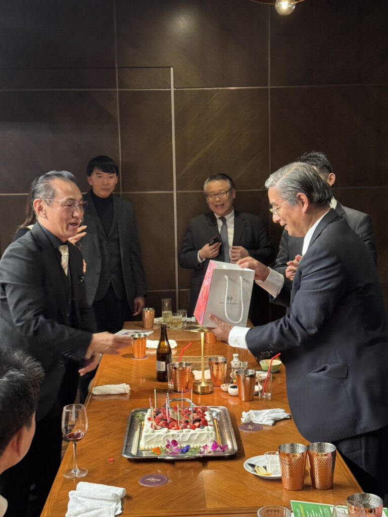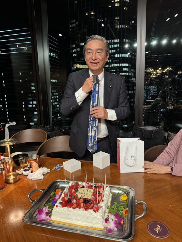 前日が山本博司さんの誕生日ということもあり、会場ではバースデーケーキ🎂とネクタイ👔をプレゼントし、参加者全員でお祝いをさせていただきました👏