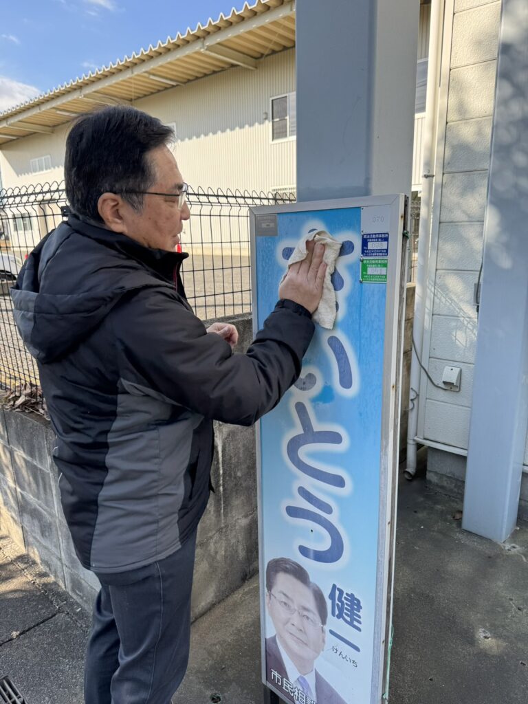 本日は、1年間にわたり後援会連絡所の看板を設置してくださったお宅へ、御礼と看板掃除のご挨拶に伺いました。